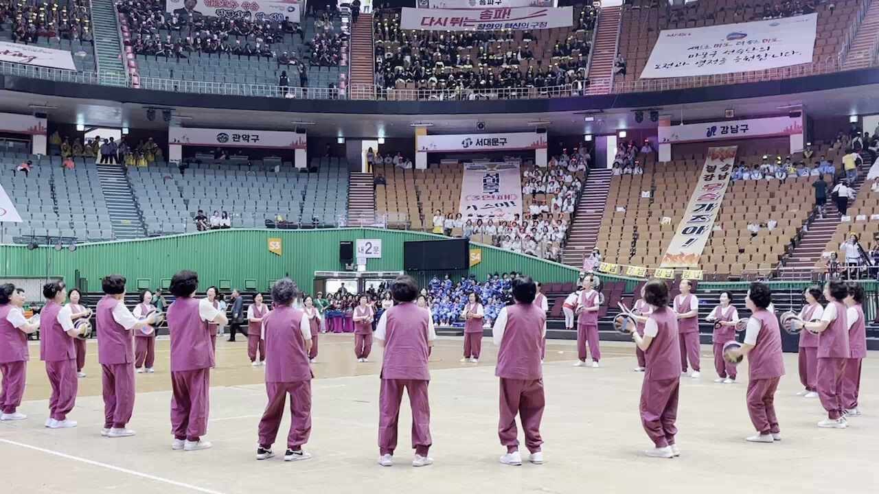 체육관에 들어가자 서울 25개 자치구의 응원소리가 크게 들렸어요!