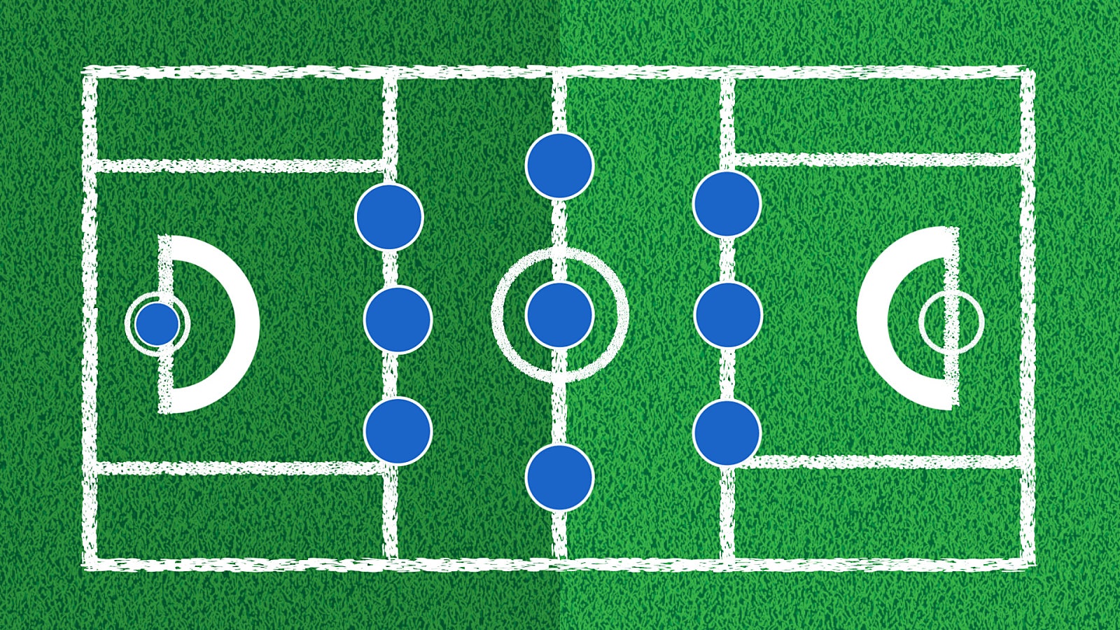 10명이 한 팀으로, 포지션은 골리 1명, 수비수 3명, 미드필더 3명, 공격수 3명으로 구성되어 있습니다.