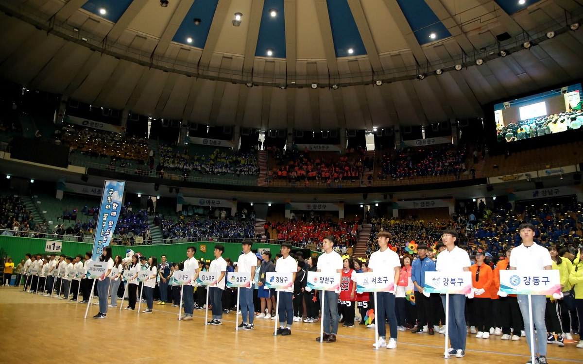 각 자치구를 대표하는 8,500명의 시민들이 한자리에 모였습니다. 여기에 대회를 이끄는 운영진과 심판진까지 더해 약 9,000명이 만들어낸 거대한 물결. 잠실실내체육관 안팎은 그야말로 축제의 장이었습니다. 25개 구의 깃발이 줄지어 입장하던 개회식. 관중석은 알록달록한 유니폼으로 물들었고, 선수단의 눈빛은 경쟁보다 연대에 가까웠습니다.