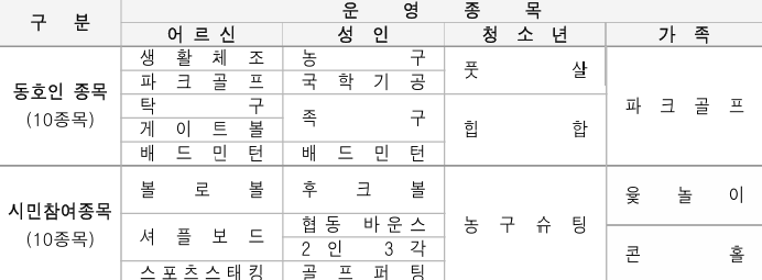 다양한 연령층별로 참여 종목을 나누었기 때문에
