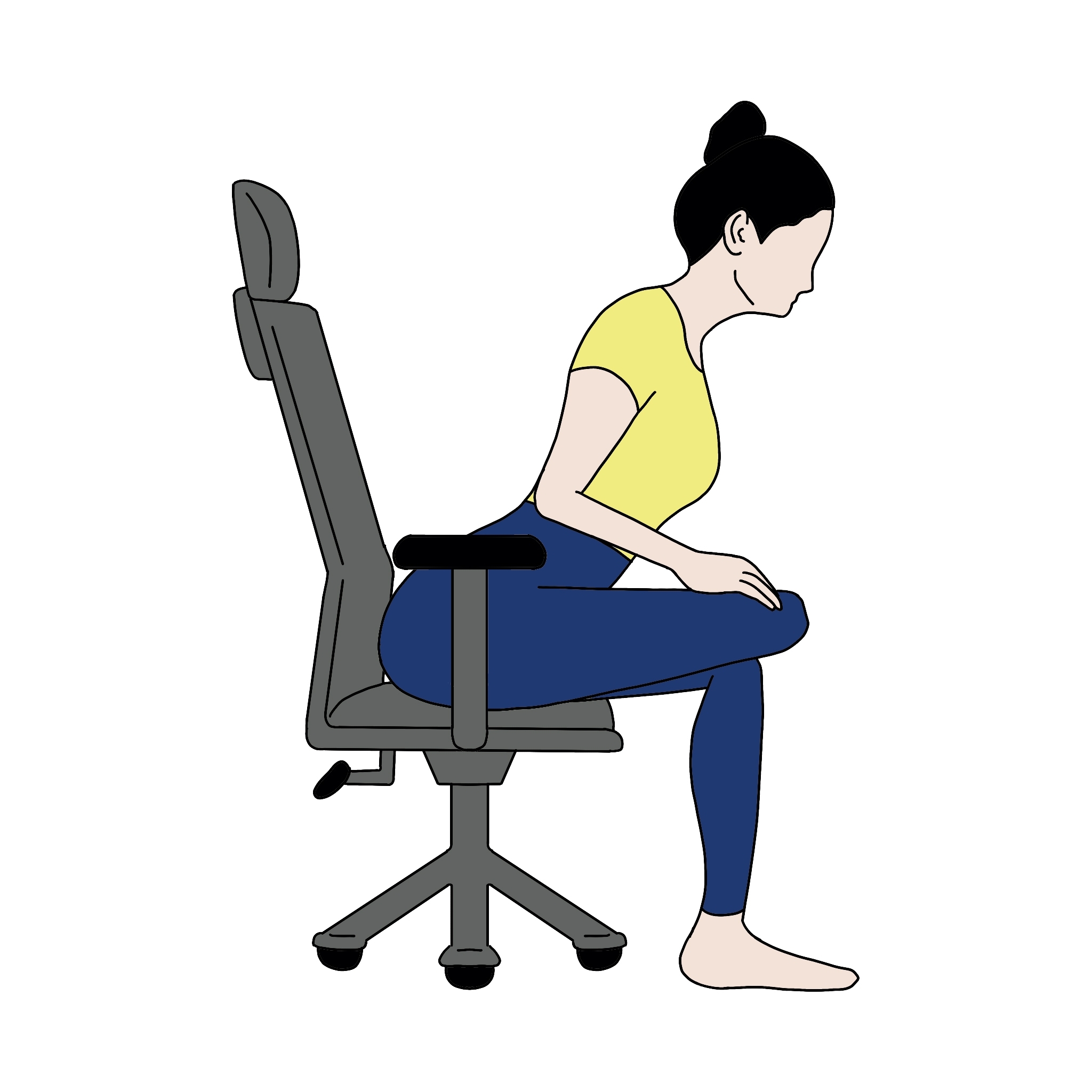 왼손으로 왼쪽 무릎을 살짝 눌러