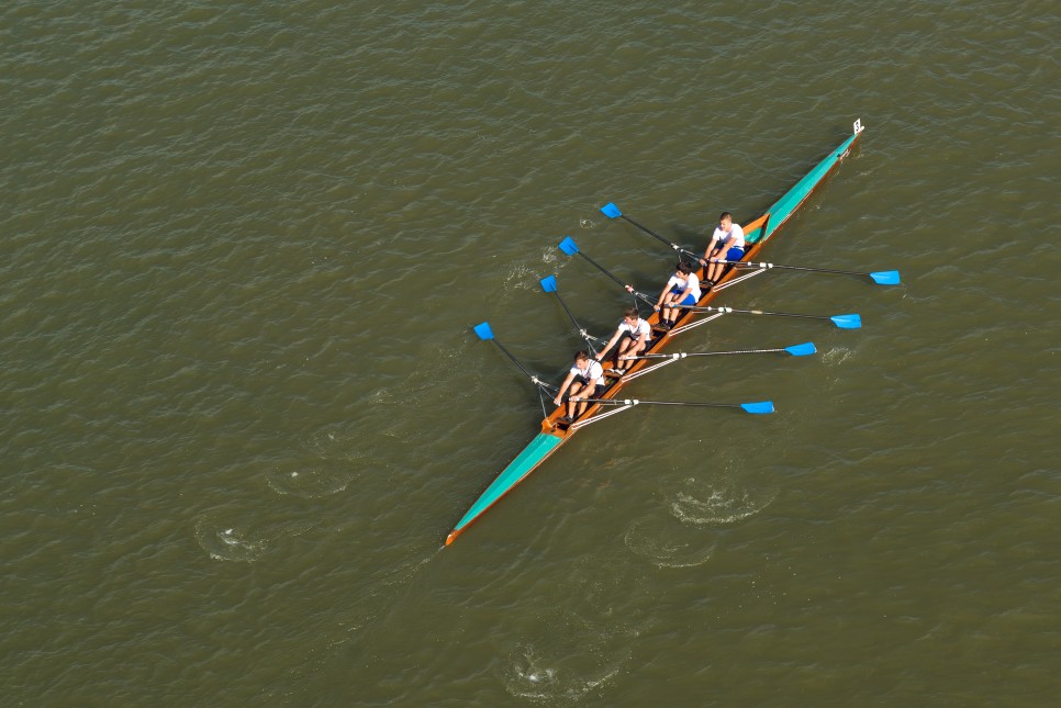 여럿이 함께 노를 젓는 조정 종목에서는 특히 소통과 단결이 중요하지요.